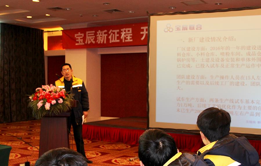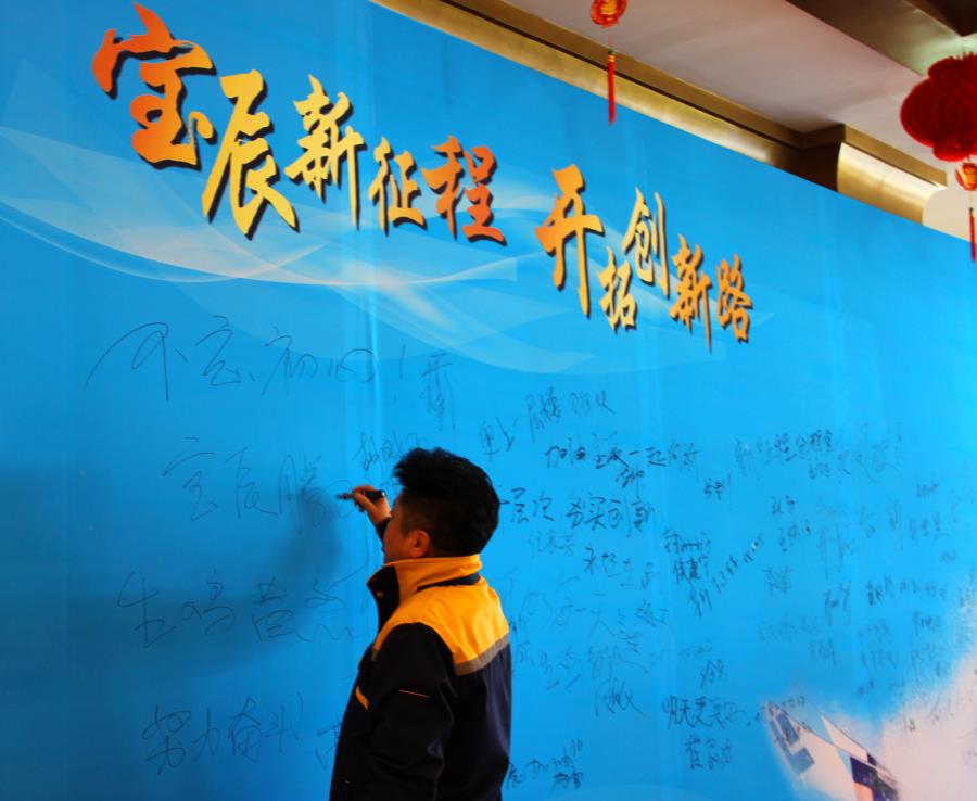 年会现场,宝辰联合董事长在会议签到板前写下了新年寄语:“不忘初心,砥砺前行!”随后大家也陆续写下了对新年的美好寄托。本次会议中,宝辰联合董事会向全体员工致新年贺词,表达了对宝辰员工努力付出的深深谢意和最深切的祝福。随后生产总监杜建勋、南方区总经理封海波、进出口总监支静、特种产品事业部总监高军、董事会秘书胡晓飞、高级经理赵九东、蒙相铕等领导进行了总结和17年展望和计划,宝辰联合的各职能部门也分别作了2016年度工作总结和2017年的工作规划。报告中,各部门负责人总结了2016年的成绩与不足,明确了2017年部门的总体工作规划,并给公司提出合理性建议、发表了情深意切的宝辰感言--“我和宝辰”。会上公司董事会公布了2017行政级别晋升通知,对积极推动公司发展的员工给予了行政升级与工作肯定。最后,由宝辰联合董事长王总作了重要发言,王总的讲话饱含深情,催人奋进,在座的每一位员工都被王总的激情所深深感染,奋进拼搏去做一个有梦想的人!