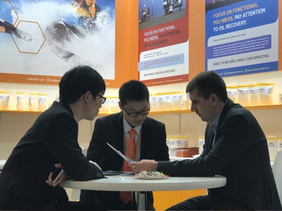宝辰联合密切关注油气开采领域的需求和行业发展动态,倡导实现油气开采经济效益与环保要求的统一。本次展会推出的多种TIONES®聚合物全新油田钻井、固井高分子聚合物添加剂最大程度满足了石油开采领域的行业需求,展会上受到众多国外参展客商的欢迎。对宝辰联合TIONES®石油化学品表示了极大兴趣,很多客户现场对产品性能进行了详细咨询, 希望通过这次机会进行深入合作。